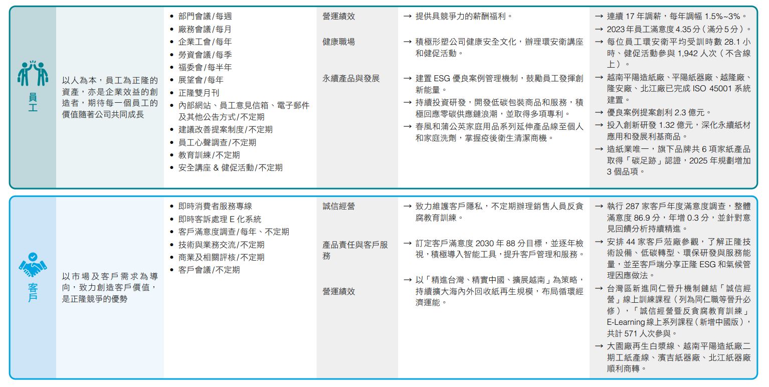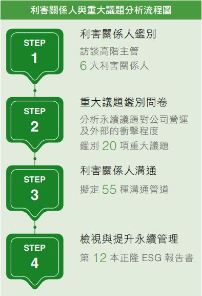 "重視所有管道的互動溝通,有助於正隆更清楚理解利害關(guān)係人的 合理期望,也讓我們回應(yīng)社會需求與持續(xù)精進(jìn)成長。"