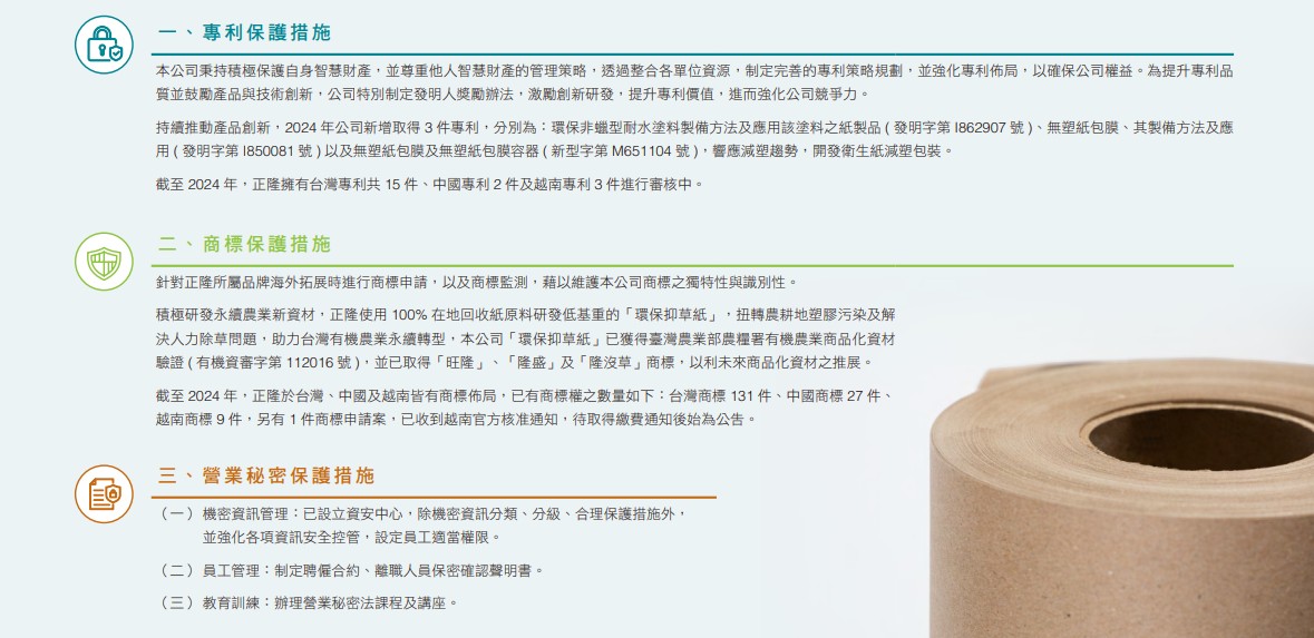 正隆智慧財產管理風險因應與 2024 年執行成果如下: