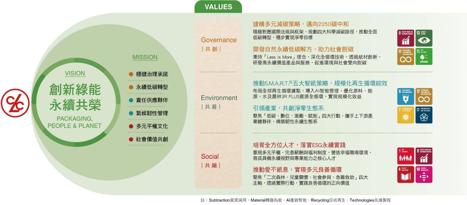正隆以「創新綠能、永續共融」為永續推展主軸,鏈結聯合國「永續發展目標(Sustainable Development Goals, SDGs)」,將 SDGs 納入企業營運核心。秉持以少創多『Less is More』的理念,從價值鏈上的整體營業活動檢視 SDGs 對業務、營運過程及上下游的相關性,並集結外部夥伴及資源,最大化正向影響力。讓簡單的一張紙,實現環境、生態與社會的三重效益,攜手利害關係人為地球與世代創造更好的未來。
